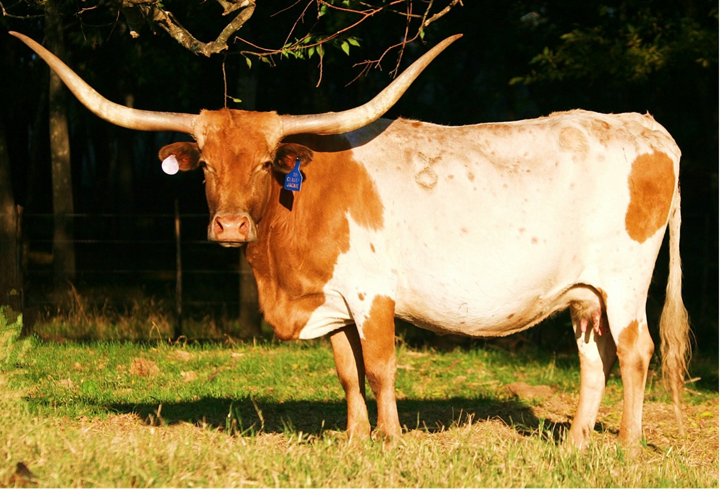 This big, sturdy cow has a nice set of horns and is straight YO breeding. She has consistently produced some very nice offspring for us out of our 76"+ bull Maximus ST and is now being bred to Rio Diego, our Rio Grande son that measured 75 5/8" T2T @ 43 months!