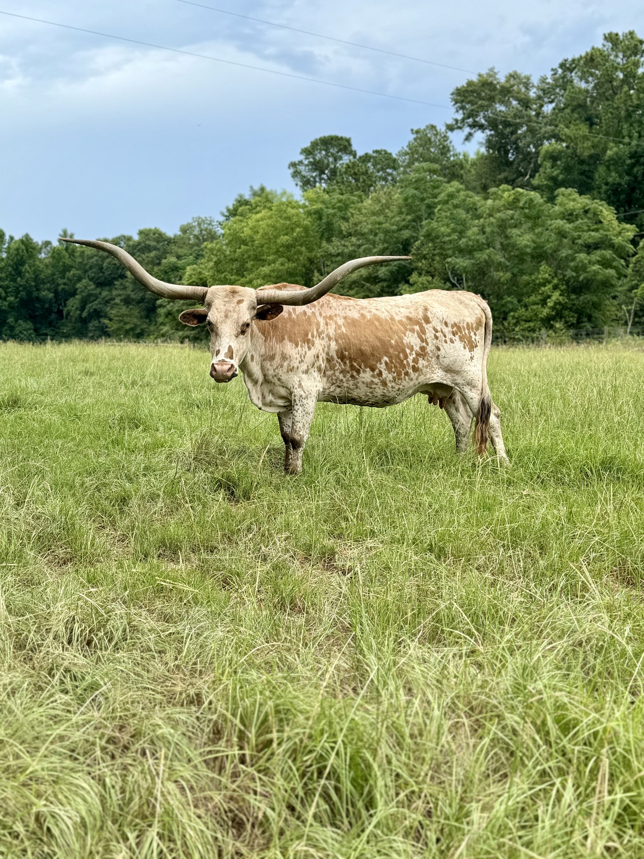 This cow has had nothing but female calves. She is a phenomenal milker with over 80+“ twisty horn!!